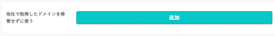 管理画面の「ドメイン/SSL」にて「ドメイン新規追加」ボタンを押下。すこし下にスクロールして「他社で取得した独自ドメインを移管せずに使う」の「追加」ボタンを押下。